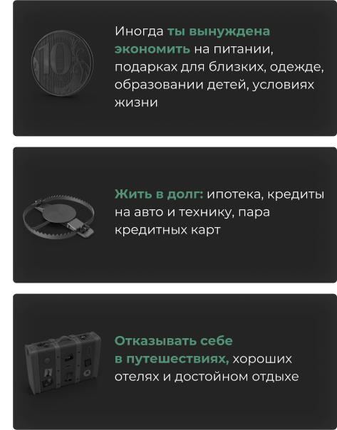 Иногда ты вынуждена экономить на питании,подарках для близких, одежде, образовании детей, условиях жизни